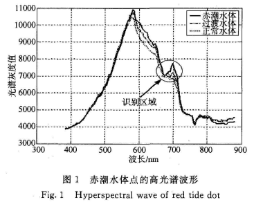 赤潮檢測一般包括兩種技術手段:暴發現場檢測和遙感檢測,其中遙感檢測因其具有大面積、同步、成像和相對廉價等優勢,在赤潮檢測中扮演著愈來愈重要的角色。衛星遙感檢測具有重復觀測周期長、空間分辨率低和傳感器設置的波段少等難以克服的缺陷,因此不能進行定量分析,無法對赤潮做出準確檢測,更無法對赤潮進行進一步的分類和識別研究。航空高光譜遙感數據具有空間分辨率高、波譜連續、覆蓋面大的優點,特別適合于近岸海域的赤潮監測。本文提出的方法,可以提取出高光譜數據波形吸收峰和反射峰的特征參數,進而完成對赤潮的識別。