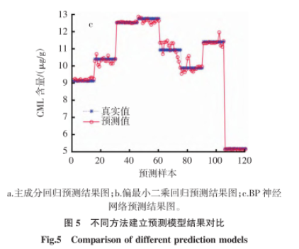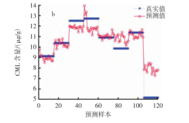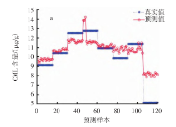 以不同CML含量的油炸薯片為檢測對象,利用高光譜成像儀采集波長為371.05 nm~1 023.82 nm的圖像,首先提取波長為200 ~ 1000的圖像平均值。光譜反射值,然后經過黑白校正和標準正態變量變換光譜預處理,最后比較主成分回歸、偏最小二乘回歸和BP神經網絡三種建模方法。結果表明,基于BP神經網絡的油炸薯片中CML含量預測模型最為準確。經過驗證,該預測模型兼具準確性和穩健性。這說明高光譜圖像技術結合BP神經網絡能夠準確預測油炸薯片中CML的含量,為食品中CML含量的快速無損檢測提供了重要依據。